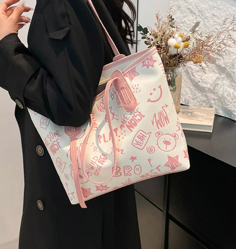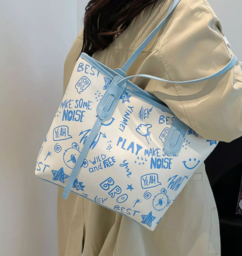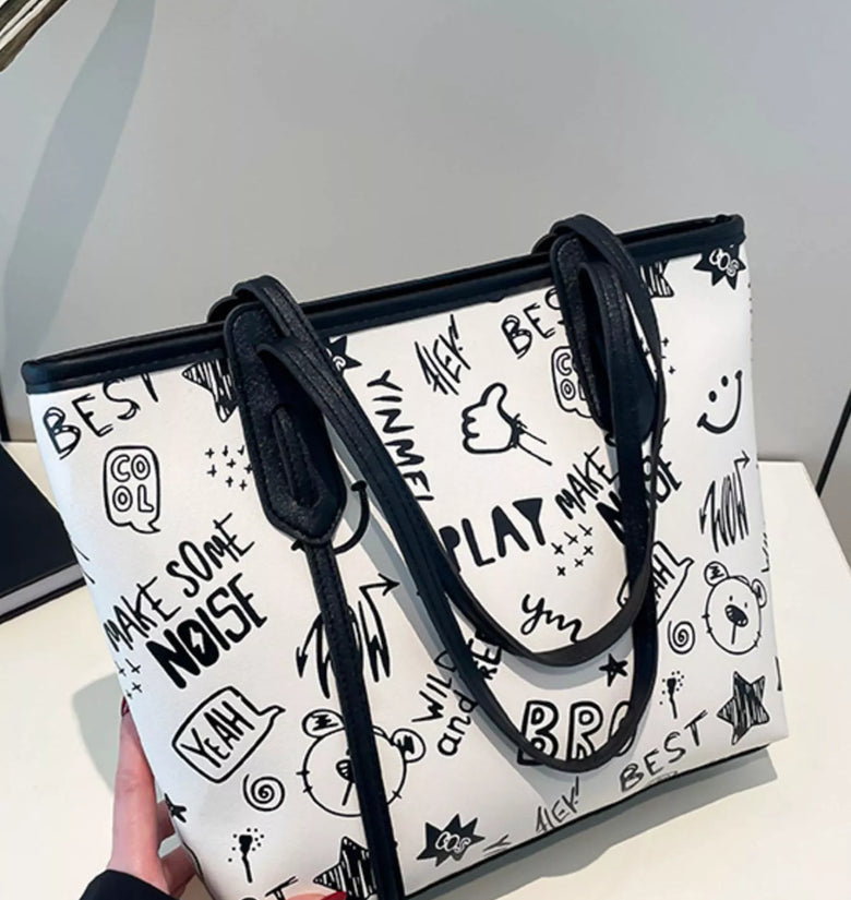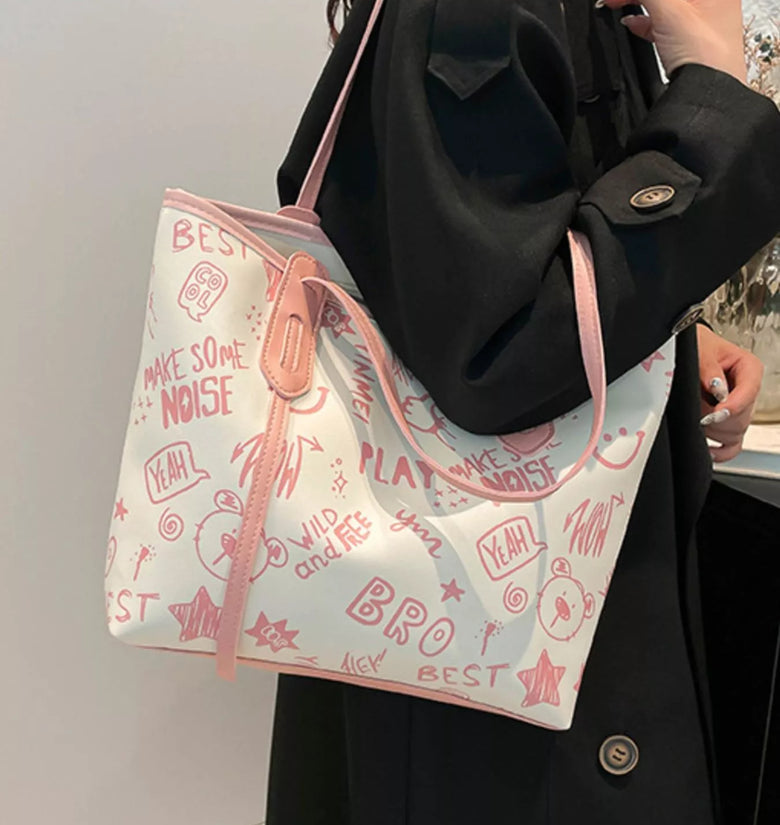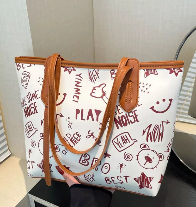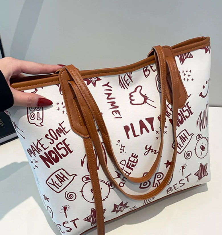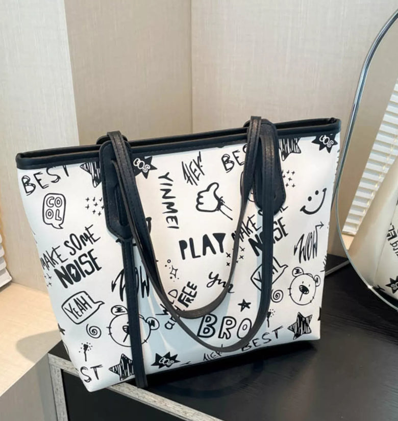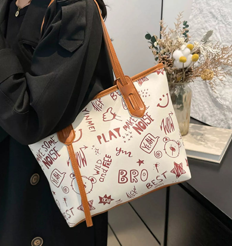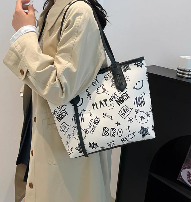 Graffiti Print Casual Tote Bag